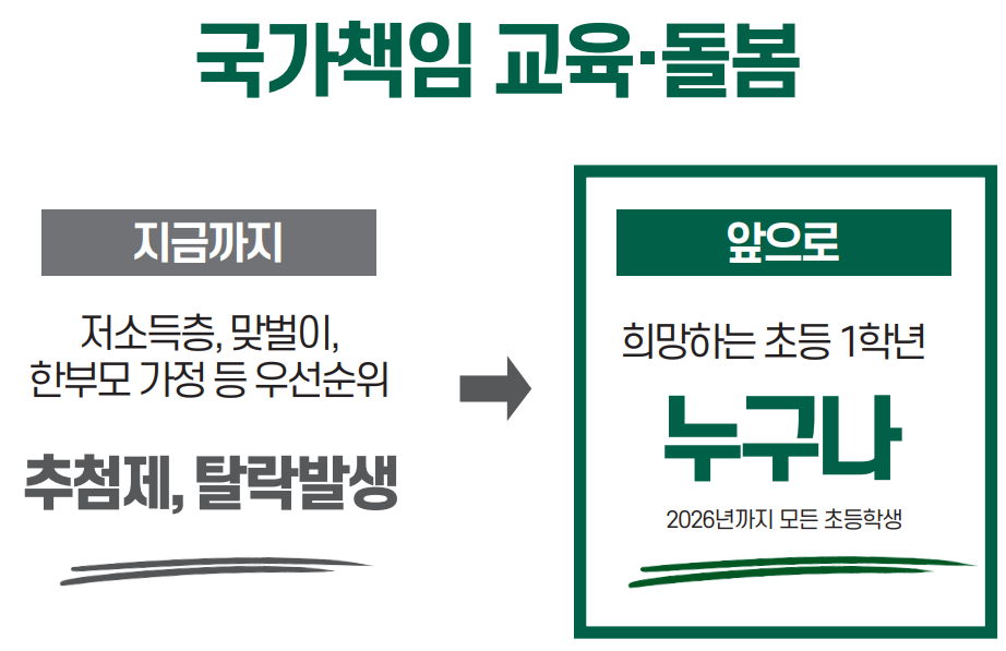 - 기존 프로그램의 통합과 업그레이드: 늘봄학교는 기존의 돌봄과 교육 프로그램의 장점을 결합하고, 이를 한 단계 업그레이드하여 학생들에게 제공합니다. 이는 학생들에게 더욱 다양하고 질 높은 학습 기회를 제공하며, 학생들의 전인적 성장을 지원합니다.